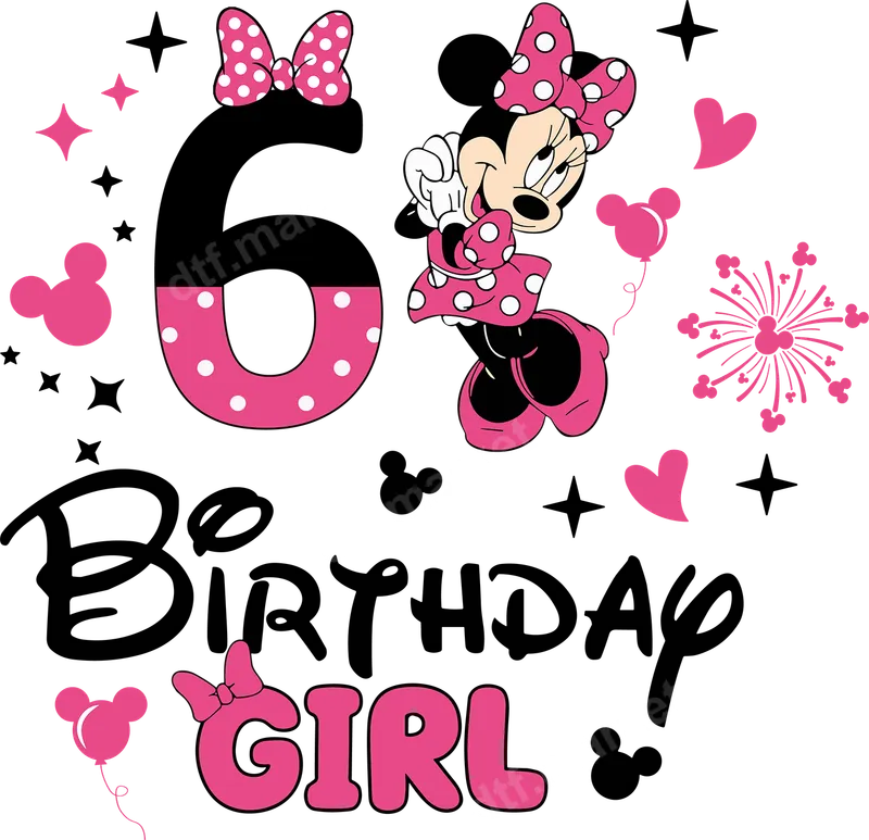 Minnie Mouse 6th Birthday Girl DTF Transfer | Ready to Press Heat Transfer
