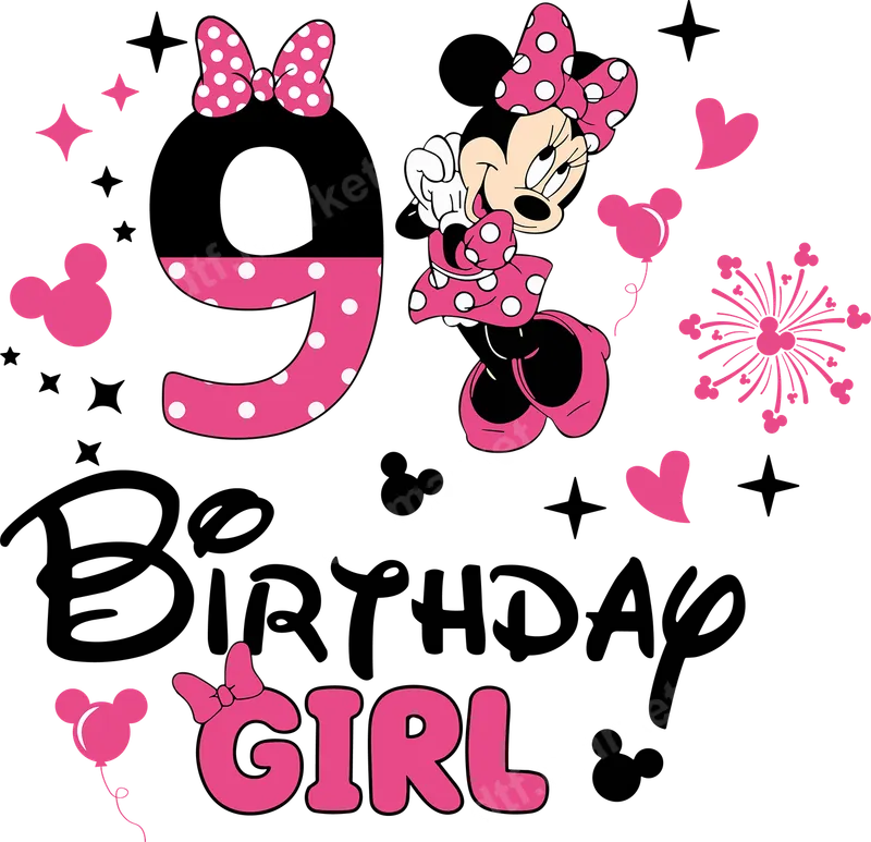 Minnie Mouse 9th Birthday Girl DTF Transfer | Ready to Press