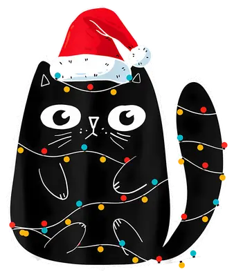 Mischievous Black Cat Christmas Lights DTF Transfer - Santa Hat