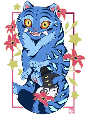 Mischievous Blue Tiger & Multi-Eyed Raven Anime DTF Transfer