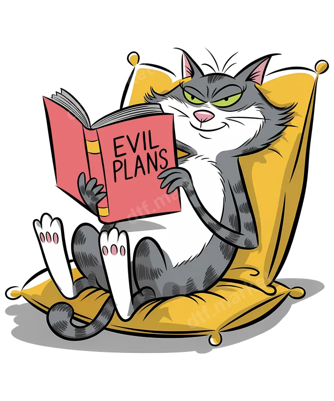 Mischievous Cat Evil Plans Book DTF Transfer | Funny Pet Humor Design