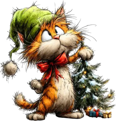 Mischievous Christmas Cat DTF Transfer with Tree & Gifts