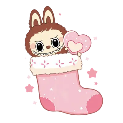 Mischievous Cute Creature in Pink Christmas Stocking DTF Transfer