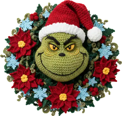 Mischievous Grinch Crochet Wreath DTF Transfer | Christmas Holiday Design
