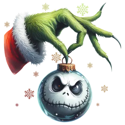 Mischievous Grinch Hand Holding Jack Skellington Christmas Ornament DTF Transfer