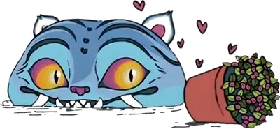 Mischievous Monster Blue Cat Spilled Plant DTF Transfer