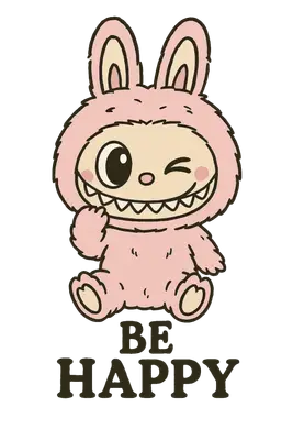 Mischievous Pink Bunny Monster 'Be Happy' DTF Transfer