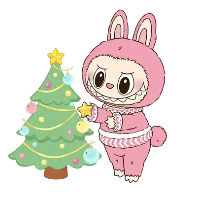 Mischievous Pink Bunny Monster Decorating Christmas Tree DTF Transfer