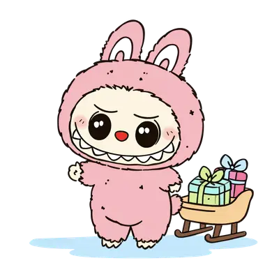 Mischievous Pink Bunny Monster with Gifts DTF Transfer | Ready to Press