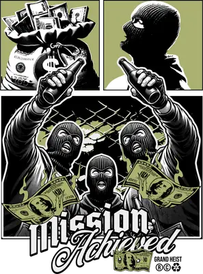 Mission Achieved Heist DTF Transfer - Balaclava, Money & Beer Design