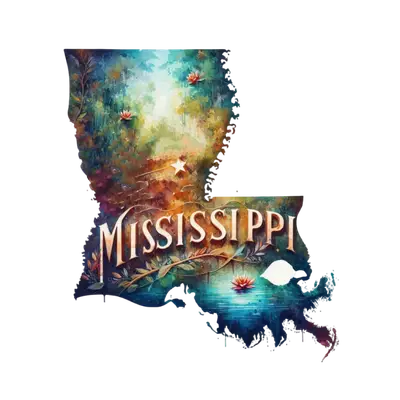Mississippi State Outline DTF Transfer - Watercolor Nature Art