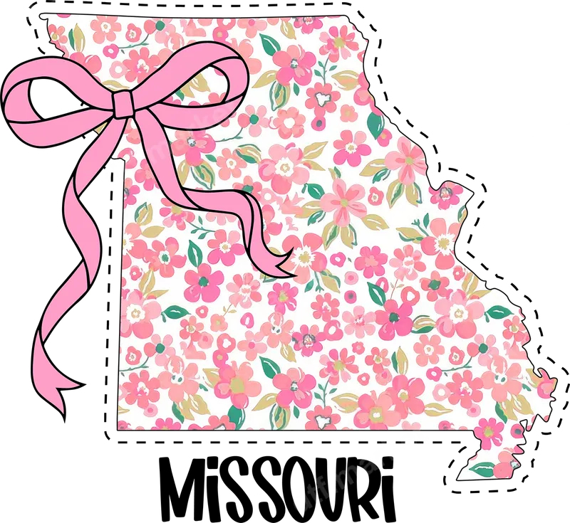 Missouri Floral State Outline DTF Transfer with Pink Bow