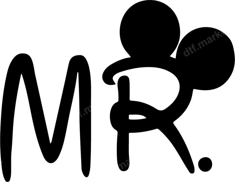 See allDive into classic charm with our Mister Mickey Mouse Head Style DTF Transfer. This unique design features the bold letters "MR." with the iconic Mickey Mouse head silhouette cleverly integrated into the "R", making for a playful yet sophisticated statement. Perfect for Disney enthusiasts and those who appreciate nostalgia, this high-quality direct to film transfer is ready to press onto your favorite apparel. This versatile heat press design is ideal for a variety of audiences and occasions. Whether you're planning a magical family vacation to a theme park, celebrating an anniversary with your significant other (pair it with a "Mrs." design!), or simply want to showcase your love for timeless characters, this t-shirt transfer is a fantastic choice. It also makes an excellent personalized gift for birthdays, holidays, or just because. Applying this stunning design is incredibly easy. Our heat press transfer works beautifully on a wide range of materials, including cotton, polyester, and most fabric blends. For best results, use a heat press at 300-325°F for 15 seconds with medium pressure. It can also be applied with a household iron for smaller projects. Best of all, there's no weeding required, making your customization quick and hassle-free. Experience superior quality with every iron on transfer. Our professional DTF transfers boast vibrant colors (even in this striking black design), are highly crack-resistant, and feel wonderfully soft to the touch once applied. Each apparel transfer is printed on premium DTF film with a strong adhesive, ensuring your custom shirt design endures countless washes and wears, maintaining its pristine look for years to come.
