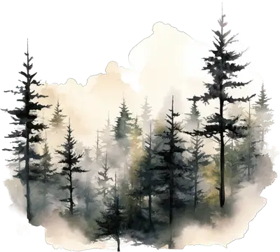 Misty Forest Pine Trees Watercolor DTF Transfer | Nature Heat Press Ready Design