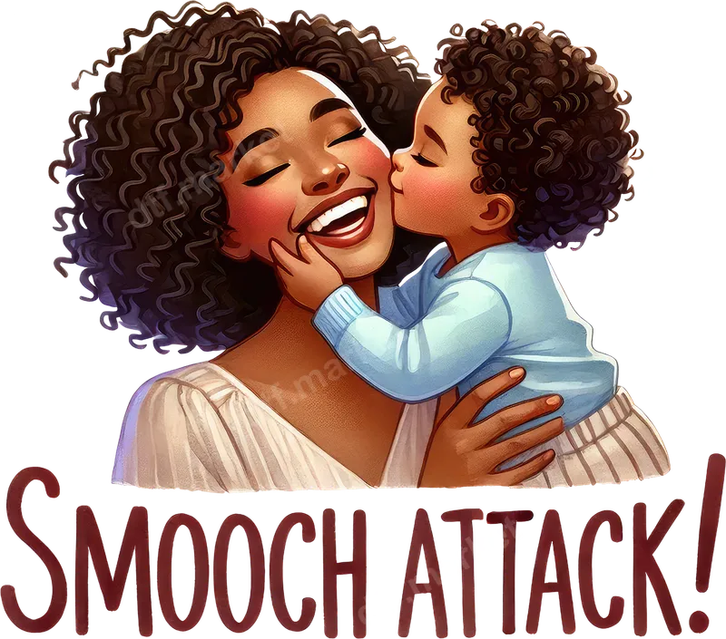 See allBring pure joy to your apparel with this heartwarming 'Smooch Attack!' DTF transfer. This vibrant, ready to press transfer captures a beautiful moment between a smiling mother and her loving child, full of warmth and affection. The playful reddish-brown text 'SMOOCH ATTACK!' perfectly complements the adorable illustration, making it an instant favorite for anyone who cherishes family bonds. This delightful design is ideal for celebrating the special moms, grandmothers, and new parents in your life. It makes a perfect gift for Mother's Day, baby showers, birthdays, or just to show appreciation any day of the year. Create custom apparel for family photos, memorable events, or unique matching outfits that highlight the love between a mother and her little one. It's also a fantastic option for small businesses looking to offer high-quality, pre-made heat press designs to their customers. Applying this high-quality iron on transfer is simple and straightforward. Our direct to film transfers are designed for easy application with either a professional heat press (300-325°F for 15 seconds with medium pressure) or a household iron. They adhere beautifully to a wide range of fabrics including cotton, polyester, and various blends, without the need for complicated weeding. Enjoy a hassle-free customization experience from start to finish. Experience superior quality with our professional-grade apparel transfers. Each design boasts incredibly vibrant colors, crisp details, and excellent wash durability, ensuring your creation looks great for years to come. The transfers are crack-resistant and offer a soft, smooth feel once applied, integrating seamlessly with your garment. Trust dtf.market for premium heat press ready transfers that deliver professional results every time.
