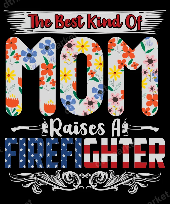 See allThis vibrant DTF transfer proudly declares "The Best Kind Of MOM Raises A FIREFIGHTER" in a patriotic and floral design. The word "MOM" features a beautiful medley of blue, orange, yellow, and pink flowers, creating a soft yet powerful tribute. Below, "FIREFIGHTER" is boldly rendered in a distressed American flag pattern, complete with an axe graphic and elegant scrollwork. This high-quality, ready to press design is perfect for celebrating the incredible mothers behind our heroes. This special heat transfer is designed for proud firefighter moms, wives, and families. It makes an ideal gift for Mother's Day, birthdays, Christmas, or any occasion to show appreciation for their dedication and sacrifice. Perfect for supporting your firefighter at events, parades, or just everyday wear, this iron on transfer lets every mom wear her pride on her sleeve (or chest!). Applying this apparel transfer is simple and efficient. It works seamlessly on a wide range of materials including cotton, polyester, and various blends. For best results, use a heat press at 300-325°F for 15 seconds with medium pressure. This direct to film transfer requires no weeding, saving you time and effort, and can also be applied with a household iron for convenience. Experience superior quality with every print. Our DTF transfers deliver incredibly vibrant colors, sharp details, and excellent wash durability. The designs are crack-resistant and feature a soft-hand feel once applied, ensuring comfort and longevity. Made with professional-grade DTF film and strong adhesive, this t-shirt transfer ensures a professional finish every time.
