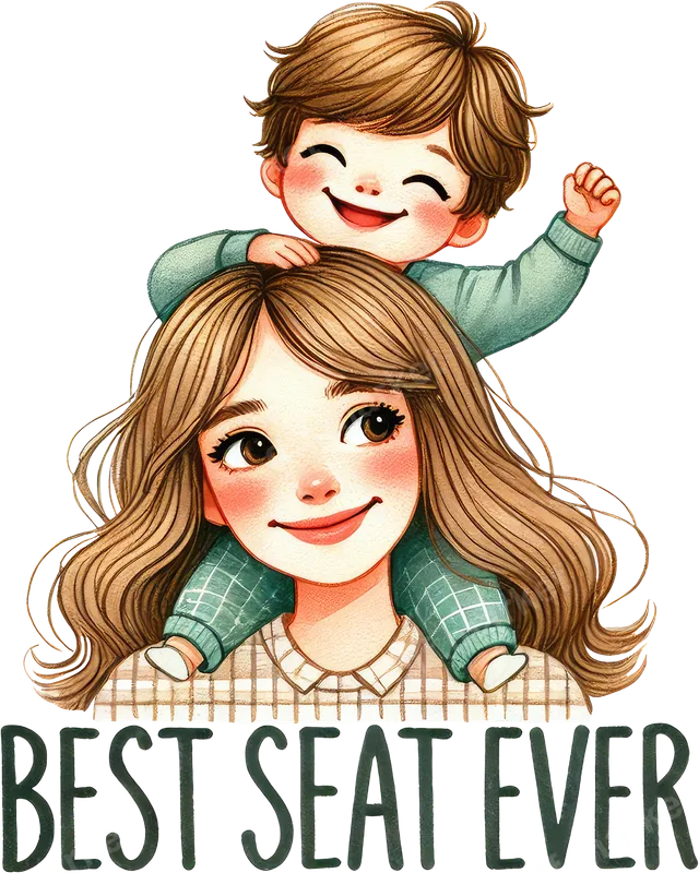 See allCapture the heartwarming joy of motherhood with our 'Best Seat Ever' DTF transfer. This delightful design features a beautifully rendered watercolor-style illustration of a smiling mom giving her ecstatic child a piggyback ride, accompanied by the playful text 'BEST SEAT EVER'. It perfectly encapsulates the precious bond between a mother and her son, celebrating those unforgettable moments. This ready to press transfer brings a touch of warmth and happiness to any garment. This adorable image is ideal for moms, grandmothers, and expecting mothers who cherish family moments. It makes a fantastic gift for Mother's Day, birthdays, baby showers, or just because. Create custom t-shirts, cozy sweatshirts, or thoughtful tote bags for the amazing moms in your life. It's also perfect for family photo shoots or matching family outfits, highlighting the special connection. Our premium heat transfer is incredibly versatile and can be applied seamlessly to a wide range of materials, including cotton, polyester, and various fabric blends. For best results, use a heat press at 300-325°F for 15 seconds with medium pressure. It's also suitable for application with a household iron, making it accessible for everyone. Enjoy a hassle-free experience with this vibrant iron on transfer that requires absolutely no weeding or layering. You'll love the exceptional quality of our direct to film transfer. Each print delivers incredibly vibrant colors and sharp details that stand the test of time, resisting cracks and peels even after many washes. The finish is soft to the touch, ensuring comfort when worn, unlike traditional vinyl. Crafted using professional-grade DTF film with a strong, durable adhesive, this apparel transfer ensures a long-lasting, professional look on all your garments.