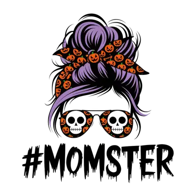 Momster Messy Bun Halloween DTF Transfer | Ready to Press Spooky Mom Design