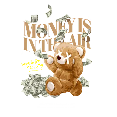 Money is in the Air Teddy Bear DTF Transfer | Hypebeast Rich Design
