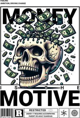 Money Is The Motive Skull DTF Transfer | Hustle Ambition Ready To Press