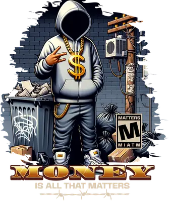 Unleash your inner rebel with this striking DTF transfer featuring a faceless hooded figure adorned with a prominent gold dollar sign chain, making a peace sign. Set against a gritty urban alleyway background with a trash can, garbage bags, and a utility pole, the design boldly declares "MONEY IS ALL THAT MATTERS" in shimmering gold text, underscored by barbed wire. This ready to press design perfectly captures an edgy, materialistic, and unmistakably street vibe, ideal for making a powerful statement. This unique iron on transfer is perfect for streetwear enthusiasts, hip-hop culture fans, and anyone who appreciates a bold, unapologetic message. It's an excellent choice for crafting custom apparel for music festivals, urban events, or as a distinctive gift for friends who love edgy fashion. Small boutique owners and Etsy sellers will find this heat transfer design a fantastic addition to their collection, offering a standout piece for their customers seeking unique and expressive garments. Applying this heat press transfer is incredibly simple. It adheres seamlessly to various fabrics, including cotton, polyester, cotton-poly blends, and even nylon. Achieve professional results with a heat press (300-325°F for 15 seconds with medium pressure) or a household iron. Forget the tedious weeding process; this transfer is ready to press right out of the package. Perfect for custom t-shirts, hoodies, sweatshirts, tote bags, pillow covers, baby onesies, aprons, and denim jackets. For long-lasting vibrancy, wash your decorated items inside out and tumble dry low. Experience superior quality with this ready to press transfer. It boasts vibrant, full-color printing with exceptional detail, ensuring every element of the urban scene and the bold text stands out. The design is crack-resistant and offers a soft, lightweight feel, unlike heavy vinyl alternatives. Each direct to film transfer is produced on premium DTF film with a robust adhesive backing, guaranteeing a professional and durable finish on all your projects.