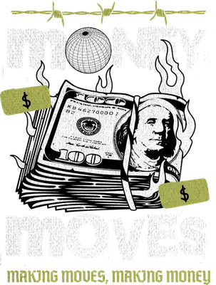This striking "Money Moves" DTF transfer captures ambition and financial drive. Featuring burning hundred-dollar bills, barbed wire, and a globe motif, it conveys a global hustle mindset. The distressed "MONEY MOVES" text and "MAKING MOVES, MAKING MONEY" tagline create an edgy, motivational vibe. This eye-catching design is a perfect ready to press graphic for anyone looking to make a powerful statement. This apparel transfer is ideal for young entrepreneurs, streetwear enthusiasts, aspiring moguls, and anyone driven by ambition. It’s a powerful iron on transfer for individuals who embrace the "hustle culture" and want to showcase their dedication to success. Perfect for creating unique merchandise for small online boutiques, personal brand apparel, or gifts for business-minded friends and family. This heat transfer design embodies financial aspiration and urban style. Applying this heat press transfer is simple, suitable for cotton, polyester, blends, and even nylon. Achieve professional results using a heat press (300-325°F, 15 seconds, medium pressure) or a household iron. No weeding required—just peel and press! Perfect for customizing t-shirts, hoodies, tote bags, and denim jackets, transforming items into personalized statements. For lasting durability, wash inside out and tumble dry low. Experience superior quality with this ready to press transfer. Each direct to film transfer boasts vibrant, full-color printing that captures every fine detail. It's crack-resistant, soft to the touch, and avoids the heavy, bulky feel of vinyl transfers. Printed on premium DTF film with a robust adhesive backing, this ensures professional-grade application and outstanding longevity for all your custom creations.