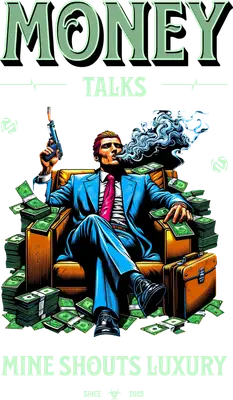 This striking DTF transfer features a "Money Talks, Mine Shouts Luxury" design. A sharply dressed man, cigar in hand and pistol raised, sits amidst stacks of cash, exuding opulent power. The bold comic-book style and vibrant colors make this an unmissable statement piece, instantly ready to press onto your chosen apparel. Perfect for ambitious entrepreneurs, hustlers, and streetwear enthusiasts, this graphic speaks to those who value drive and success. It's an ideal iron on transfer for crafting unique gifts or personal branding, allowing you to make a high-impact statement. Use this heat transfer design for custom attire at social events, business gatherings, or to elevate your everyday style. Applying this heat press transfer is effortless on cotton, polyester, blends, and nylon. Simply use a heat press (300-325°F, 15 seconds, medium pressure) or a household iron. No weeding is required – just peel and press. Create custom t-shirts, hoodies, tote bags, or denim jackets. Wash inside out and tumble dry low for exceptional durability and lasting vibrancy. This ready to press transfer offers superior quality with vibrant, full-color printing and fine detail. Our DTF transfers are crack-resistant and soft to the touch, without the heavy feel of vinyl. Each direct to film transfer is meticulously printed on premium DTF film with a strong adhesive backing, ensuring professional-grade results and long-lasting wear for all your custom projects.