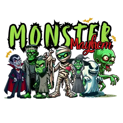 See allUnleash a playful fright with our vibrant Monster Mayhem DTF transfer, featuring a classic gang of cartoon monsters ready to cause some fun mischief! This eye-catching design brings together Dracula, Frankenstein's monster, a grumpy werewolf, a mischievous mummy, a cackling witch, a friendly ghost, and a brain-hungry zombie under the bold 'MONSTER Mayhem' text, adorned with flying bats. Bursting with bright greens, reds, and purples, this ready to press design is perfect for creating memorable Halloween attire. This spooktacular iron on transfer is ideal for anyone looking to add a touch of classic monster fun to their wardrobe or products. Perfect for families planning matching Halloween outfits, trick-or-treating ensembles, school events, or costume parties. Small t-shirt businesses and crafters will find this heat transfer design a fantastic, easy-to-sell item for the spooky season, catering to both kids and adults who love iconic monsters with a fun twist. Our high-quality heat press transfer works beautifully on a variety of fabrics including cotton, polyester, and blends, and even nylon. Application is simple: use a heat press at 300-325°F for 15 seconds with medium pressure, or apply with a household iron. There's no tedious weeding required—just peel and press! Create custom t-shirts, cozy hoodies, spooky tote bags, playful baby onesies, or festive pillow covers with ease. For lasting durability, wash garments inside out and tumble dry on low heat. Each ready to press transfer boasts vibrant, full-color printing with exceptional detail, ensuring your designs pop. Enjoy a soft, crack-resistant finish without the heavy feel often associated with vinyl. Every direct to film transfer is printed on premium DTF film with a robust adhesive backing, guaranteeing professional-grade results that will stand out at any Halloween gathering or monster-themed event.