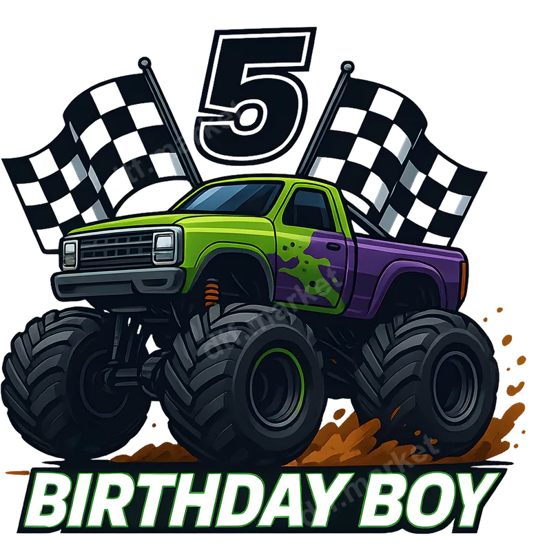 Monster Truck 5th Birthday Boy DTF Transfer Design