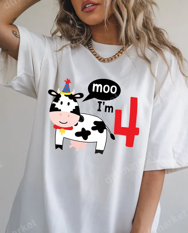Moo I'm 4th Birthday Cow DTF Transfer | Kids Party Ready to Press