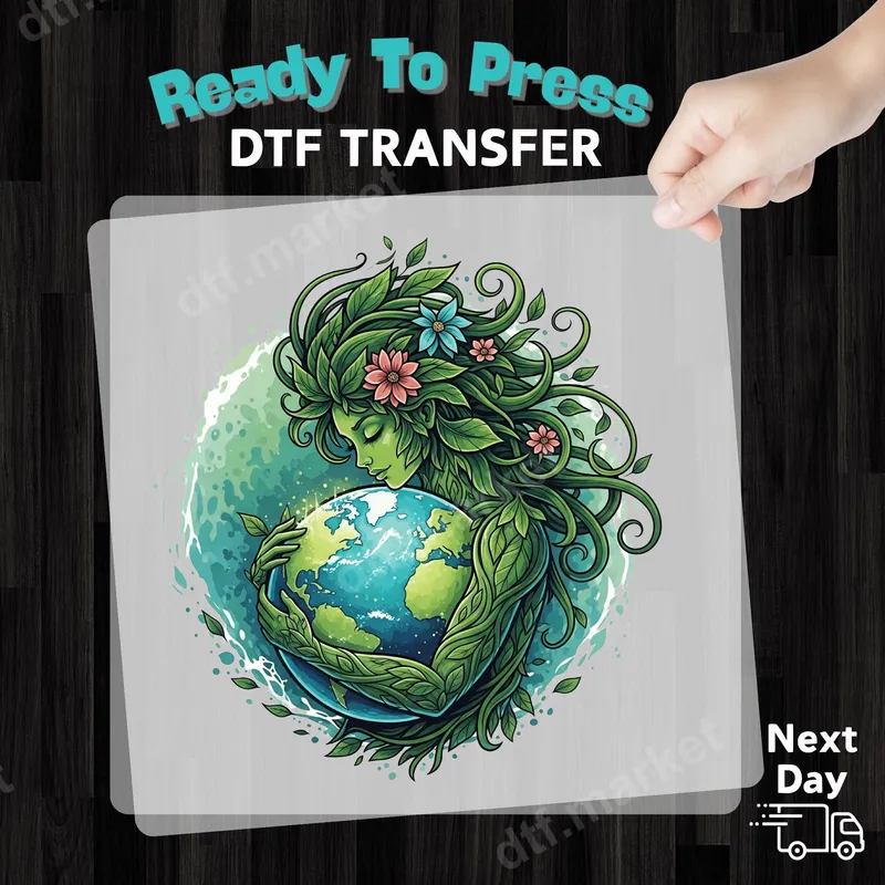 See allCelebrate our planet with this stunning Mother Earth Gaia DTF transfer. This captivating design features a serene, leafy Mother Earth figure, adorned with delicate pink and blue flowers, gently cradling the vibrant globe. Its rich, organic hues and intricate details make it an eye-catching piece, symbolizing love and protection for nature. This ready to press DTF transfer is perfect for an eco-conscious message. Ideal for environmental advocates, nature enthusiasts, and those passionate about sustainability, this unique heat transfer makes a powerful statement. It’s an excellent choice for Earth Day events, nature-themed gatherings, or as a thoughtful gift. Inspire conversations and proudly display your commitment to preserving our planet on everyday wear. This versatile design appeals to all ages and reminds us of our connection to nature. Applying this premium iron on transfer is simple for crafters of all levels. Our DTF transfers work flawlessly on various materials, including cotton, polyester, and blends. For best results, use a heat press at 300-325°F for 15 seconds with medium pressure, then cold peel. A household iron can also be used, ensuring hassle-free customization with no weeding required, making your projects quick and enjoyable. Experience professional-grade results with every application. Our direct to film transfers boast incredibly vibrant colors that remain true wash after wash, resisting cracking and peeling. The soft-touch finish integrates seamlessly with fabric, ensuring maximum comfort and durability. This high-quality heat press design utilizes robust DTF film and strong adhesive, guaranteeing a long-lasting and beautiful apparel transfer.