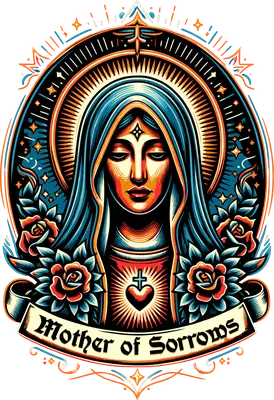 Mother of Sorrows Virgin Mary DTF Transfer | Sacred Heart & Roses