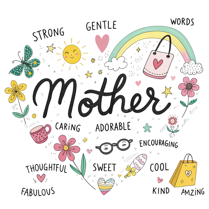 See allThis delightful DTF transfer features a heartwarming design centered around "Mother," encircled by whimsical doodles and affectionate descriptors. Adorned with illustrations like sunshine, butterflies, flowers, and gifts, alongside words such as "Strong," "Gentle," "Caring," and "Fabulous," this ready to press transfer radiates warmth and appreciation, perfect for personalized gifts. This versatile heat press design is ideal for celebrating mothers, grandmothers, or maternal figures. It's a must-have for Mother's Day, birthdays, or thoughtful 'thank you' gifts. Crafters and small business owners can use this eye-catching apparel transfer to create unique merchandise, while individuals personalize gifts for their own moms, making it a truly special keepsake. Applying this iron on transfer is incredibly simple. Our high-quality DTF transfers adhere beautifully to 100% cotton, polyester, and blends. For best results, use a heat press at 300-325°F for 15 seconds with medium pressure. It’s a quick peel and press, requiring no weeding or complex layering. A household iron can also be used for smaller projects. Experience premium quality with our professional direct to film transfers. Each design is printed with vibrant, true-to-life colors that resist cracking, fading, and peeling, ensuring your creations look fantastic wash after wash. The finished product boasts a soft, lightweight feel, blending seamlessly with the fabric for maximum comfort. Choose our heat press ready transfers for durable, high-quality results.
