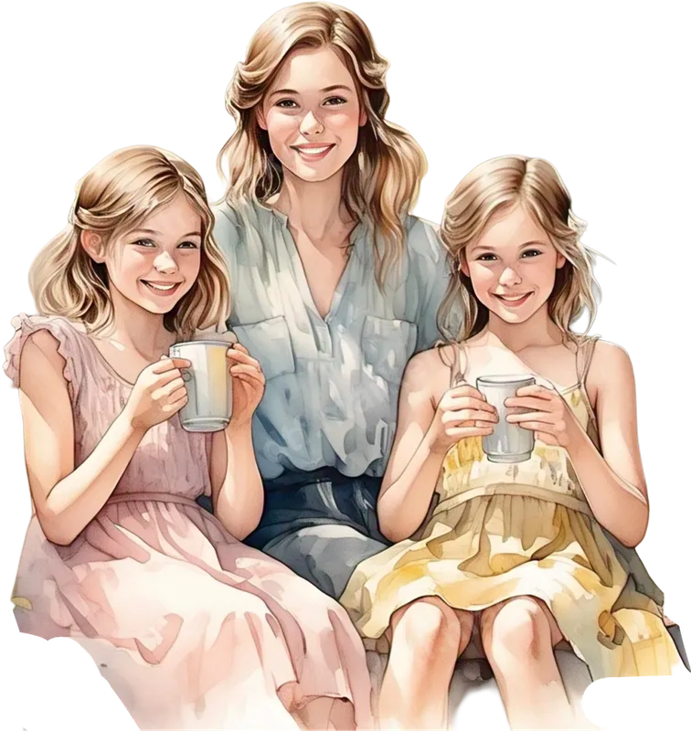 Mother Two Daughters Smiling Watercolor DTF Transfer
