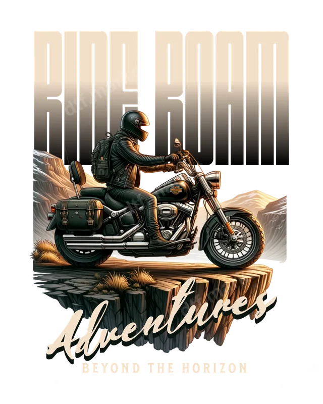 See allThis striking DTF transfer captures the essence of open-road freedom, featuring a lone biker on a classic cruiser motorcycle perched dramatically on a cliff edge. Bold gradient text declares "RIDE ROAM," while "Adventures" and "BEYOND THE HORIZON" complete the adventurous message. This premium, ready to press design perfectly embodies the spirit of exploration and the thrill of the ride. Ideal for motorcycle enthusiasts, road trip adventurers, and open-road lovers, this heat press transfer is fantastic for personalizing apparel. It makes a perfect gift for Fathers Day, birthdays, or a thoughtful present for a fellow rider or motorcycle club member. Create unique custom t-shirts, hoodies, or vests for your next rally or trip. Applying this versatile apparel transfer is a breeze. Our high-quality DTF transfers work seamlessly on cotton, polyester, and blends. For best results, use a heat press at 300-325°F for 15 seconds with medium pressure, then cold peel. While a heat press is recommended, this iron on transfer can also be applied with a household iron. Unlike traditional vinyl transfer designs, there's absolutely no weeding required. Experience professional-grade quality with vibrant colors and crisp details. Our direct to film transfers are crafted using durable, crack-resistant film with a strong adhesive, ensuring your design remains soft to the touch and holds up beautifully wash after wash. This high-quality shirt design is built for longevity, providing a lasting, eye-catching addition to any garment.