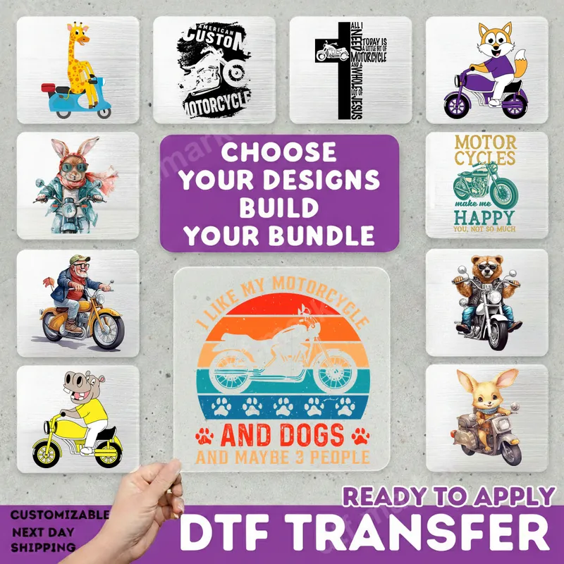 See allExpress your unique personality with this 'I Like My Motorcycle And Dogs And Maybe 3 People' DTF transfer. This eye-catching design features a classic motorcycle silhouette set against a vibrant retro sunset backdrop, complemented by charming paw prints. It's a humorous and stylish statement for anyone who values their ride and furry friends. Our premium direct to film transfer is meticulously crafted and comes ready to press, making garment customization a breeze. This funny heat press transfer is ideal for motorcycle enthusiasts, proud dog parents, and anyone with a witty, slightly introverted sense of humor. It makes an excellent gift for Father's Day, birthdays, or just because, perfect for the biker in your life who loves their canine companions. Whether you're heading to a motorcycle rally, a casual outing, or just relaxing at home, this unique design will surely spark conversations and smiles. Applying this high-quality iron on decal is simple, suitable for a wide range of fabrics including cotton, polyester, and their blends. For best results, use a heat press at 300-325°F for 15 seconds with medium pressure, followed by a cold peel. A household iron can also be used with firm, even pressure. No tedious weeding required; our ready to press transfer ensures a seamless and quick application process. Experience professional-grade quality with our durable heat press design. Each t-shirt transfer boasts vibrant colors that pop, is crack-resistant, and offers a soft, smooth feel once applied to your garment. Made with strong adhesive and exceptional flexibility, this apparel transfer is built to last, maintaining its integrity and visual appeal wash after wash.