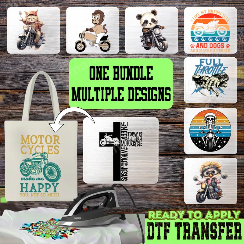 Motorcycle DTF Transfer Bundle - Funny Animals, Faith & Retro Bike Designs