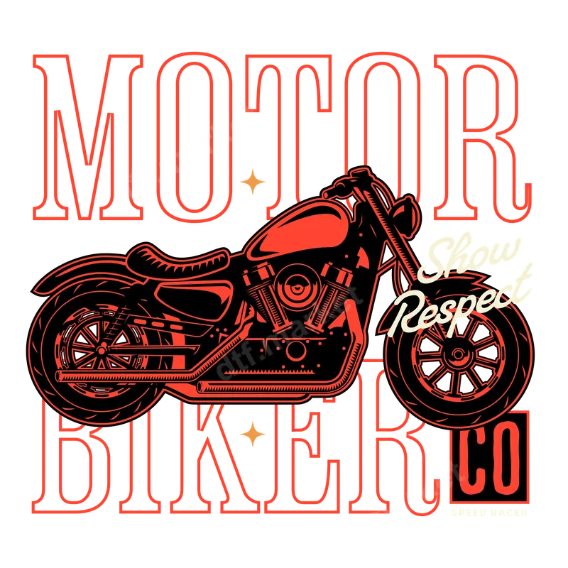 See allThis vibrant DTF transfer features a classic, stylized motorcycle design with bold "MOTOR BIKER CO" lettering and the inspiring phrase "Show Respect" in a dynamic script. Below the 'CO' is "SPEED RACER," adding to the edgy, authentic biker aesthetic. The design combines bold outlines and solid fills, creating a striking visual that's perfect for anyone who loves the open road and motorcycle culture. This ready to press transfer brings a sense of freedom and pride to any garment. This direct to film transfer is ideal for motorcycle enthusiasts, bikers, racing fans, and anyone who appreciates vintage automotive style. It's an excellent choice for personalizing apparel for bike rallies, club events, road trips, or as a unique gift for a dad, friend, or partner who lives for two wheels. Whether you're customizing gear for yourself or creating gifts, this design embodies the spirit of speed and respect. Applying this heat transfer is incredibly easy! It works seamlessly on a wide range of fabrics including cotton, polyester, and cotton/poly blends. For best results, use a heat press at 300-325°F for 15 seconds with medium pressure. It's also suitable for application with a household iron, making it accessible for everyone. Best of all, there's no weeding required – just press and peel for a perfect finish every time. Experience superior quality with this durable iron on transfer. Our professional-grade DTF film ensures vibrant colors, excellent wash durability, and a soft, flexible feel that won't crack or peel. Each heat press design is crafted with strong adhesive properties, guaranteeing a long-lasting bond to your chosen garment. Elevate your wardrobe with a design that looks professional and stands the test of time.