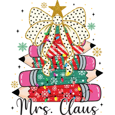 Mrs. Claus Teacher Christmas Pencils DTF Transfer