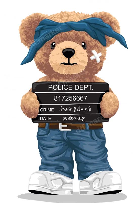 Mugshot Teddy Bear Driving Drunk DTF Transfer | Humorous Ready to Press Design