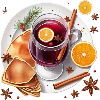 Mulled Wine & Pancakes DTF Transfer - Cozy Holiday Iron On Design