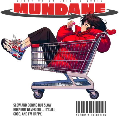 Capture the introspective and effortlessly cool vibe with this unique 'Mundane Life' anime girl DTF transfer. Featuring a character in a vibrant red puffer jacket casually lounging in a shopping cart, holding a lollipop, this design embodies a blend of urban aesthetic and thoughtful contentment. The bold 'MUNDANE' text graphic is complemented by a caption that reads, "Slow and boring but slow burn but never dull. It's all good, and I'm happy." This ready to press design is a statement piece for those who find beauty in the everyday. This aesthetic heat transfer design is perfect for Gen Z, anime enthusiasts, streetwear aficionados, and anyone who appreciates unique, expressive apparel. It makes an ideal iron on transfer for crafting personalized gifts for friends, expressing individual style, or creating trending merchandise for small businesses and Etsy sellers. Perfect for casual wear, art festivals, or simply adding a touch of laid-back cool to your wardrobe throughout the year. Applying this heat press transfer is simple and efficient. It adheres beautifully to a wide range of fabrics including cotton, polyester, cotton-poly blends, and even nylon, making it incredibly versatile. For best results, use a heat press at 300-325°F for 15 seconds with medium pressure, or apply with a household iron. No tedious weeding is required – just peel and press! Create custom t-shirts, cozy hoodies, stylish tote bags, unique denim jackets, or even personalized pillow covers with ease. For lasting durability, wash garments inside out and tumble dry on low. Experience professional-grade results with this ready to press transfer. Each direct to film transfer boasts vibrant, full-color printing with exceptional fine detail, ensuring your designs truly stand out. The transfer is crack-resistant and soft to the touch, avoiding the heavy, stiff feel often associated with vinyl. Printed on premium DTF film with a strong adhesive backing, you can achieve a flawless finish every time, transforming ordinary items into extraordinary statements.