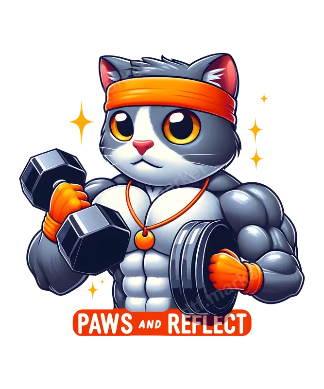 Muscular Gym Cat DTF Transfer: Paws and Reflect Funny Fitness