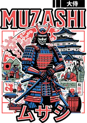 Muzashi Samurai DTF Transfer - Japanese Warrior, Castle & Blossoms