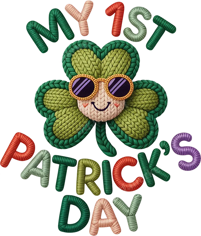 See allThe image features a charming "My 1st Patrick's Day" DTF transfer, perfect for celebrating a baby's inaugural St. Patrick's Day. This delightful design showcases a friendly, knitted shamrock sporting cool sunglasses, surrounded by chunky, yarn-textured lettering in festive greens, reds, and pastels. The overall vibe is cute, playful, and undeniably celebratory. It's a high-quality, ready to press design that brings immediate joy to any garment. This adorable heat transfer is ideal for new parents, grandparents, or anyone looking for a unique gift for a baby's first St. Patrick's Day. It's perfect for creating custom apparel for family photos, parades, or festive gatherings. Imagine a sweet little one wearing this iron on transfer on a custom onesie or a cute toddler tee. It's also a fantastic item for small businesses or crafters making themed baby apparel for the spring season. Applying this direct to film transfer is incredibly easy and versatile. Our durable heat press design works flawlessly on a wide range of fabrics, including 100% cotton, polyester, and various blends. For best results, use a heat press at 300-325°F for 15 seconds with medium pressure, then a cold peel. No need for tricky weeding or layering like traditional vinyl transfer methods, making your crafting process smooth and efficient. While a heat press is recommended, it can also be applied with a household iron with care. Expect exceptional quality from this t-shirt transfer. The colors are vibrant and true to the design, ensuring your finished garment stands out. Our professional-grade DTF film provides excellent durability, making the design crack-resistant and incredibly soft to the touch, ensuring comfort for delicate baby skin. This apparel transfer is designed to withstand countless washes, keeping your custom creation looking fresh and new for a long time.