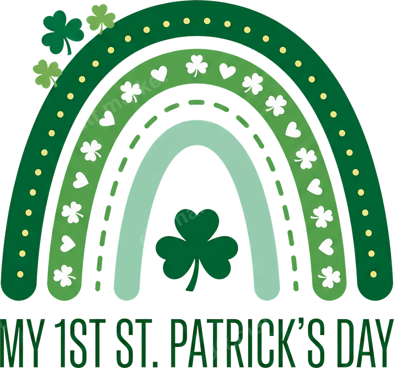 See allThis adorable "My 1st St. Patrick's Day" DTF transfer features a charming rainbow design in varying shades of green, adorned with lucky shamrocks, delicate hearts, and cheerful polka dots. The whimsical style is perfect for celebrating a precious milestone. This high-quality direct to film transfer is vibrant and ready to press onto your chosen garment. Designed specifically for the littlest leprechauns, this transfer is ideal for new parents, grandparents, or anyone celebrating a baby's first St. Patrick's Day. It makes a memorable addition to a baby shower gift, a unique outfit for holiday celebrations, or a sweet keepsake for family photos. Create custom apparel that will be cherished for years to come. Our heat transfer designs are incredibly versatile and can be applied to cotton, polyester, and most fabric blends. For best results, use a heat press at 300-325°F for 15 seconds with medium pressure, then cold peel. For those without a heat press, a household iron can also be used. Enjoy the convenience of a ready to press transfer with absolutely no weeding required, making custom creation effortless. This iron on decal offers professional results every time. Experience superior quality with every t-shirt transfer. Our professional-grade DTF film ensures bright, crisp colors that resist cracking and fading, even after multiple washes. The soft hand feel means your garment remains comfortable, while the strong adhesive guarantees long-lasting durability. Give your baby's St. Patrick's Day outfit a truly special touch with this premium apparel transfer.