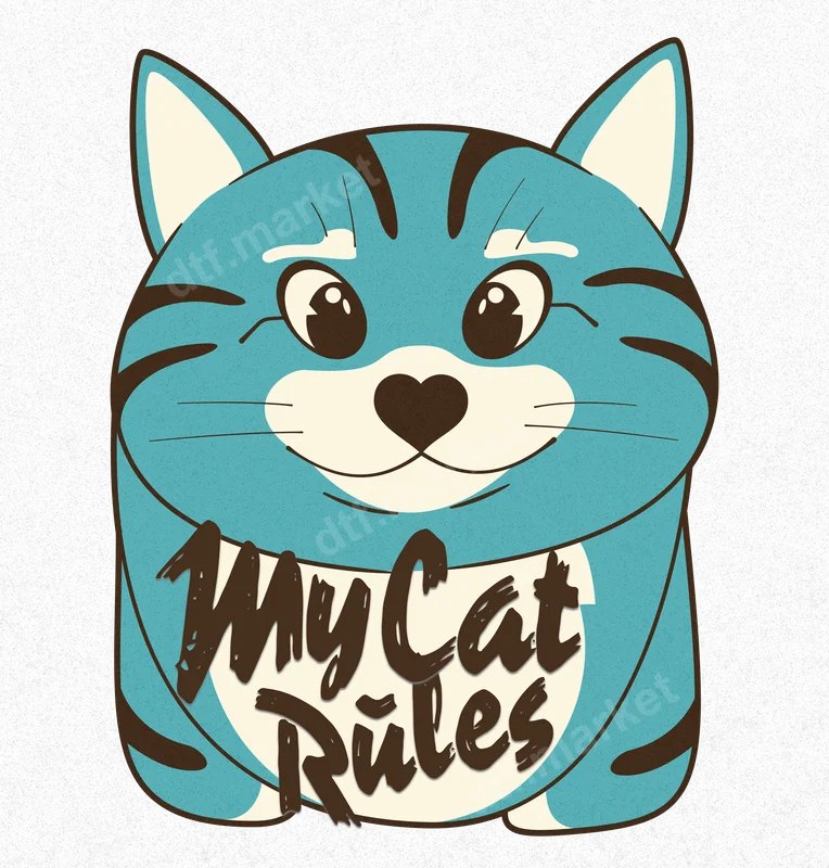 See allExpress your love for your furry overlord with our adorable 'My Cat Rules' DTF transfer. This charming design features a chunky, cheerful blue tabby cat with distinctive brown stripes and a sweet heart-shaped nose, embodying true feline affection. The playful 'My Cat Rules' text is rendered in a distressed brush-stroke style, adding a touch of vintage charm. This high-quality direct to film transfer is ready to press, making it effortless to personalize your apparel and accessories with a beloved pet theme. This whimsical design is perfect for devoted cat moms, proud cat dads, and anyone who adores their feline companions. It makes an excellent gift for birthdays, Mother's Day, Father's Day, Christmas, or just because. Whether you're attending a pet-themed event, lounging at home, or running errands, this heat press ready design lets you proudly display your allegiance to your favorite four-legged friend. It's an instant conversation starter for fellow cat enthusiasts. Applying this vibrant iron on transfer is simple and efficient. It adheres beautifully to a wide range of fabrics, including cotton, polyester, and various blends, ensuring versatility for your projects. For best results, use a heat press at 300-325°F for 15 seconds with medium pressure, then cold peel the film. For household irons, apply firm, even pressure. The beauty of this heat press design is that it requires no weeding or complicated layering, saving you time and effort. Crafted using premium DTF film and inks, our t-shirt transfer promises exceptional durability and a professional finish. The colors are incredibly vibrant and resistant to cracking or fading, ensuring your design looks fantastic wash after wash. The finished transfer is soft to the touch, seamlessly integrating with your garment without a stiff, heavy feel. Enjoy a high-quality, long-lasting apparel transfer that truly celebrates your cat.