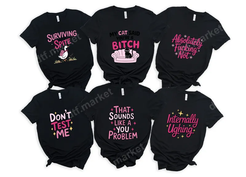 See allThis direct to film transfer features a hilariously sassy black cat perched primly on a pink sofa, accompanied by the bold text "My Cat Said You're A Bitch." It’s the perfect ready to press DTF transfer for those who love their felines with a side of edgy humor. The vibrant colors and sharp details ensure a professional finish, making this heat press transfer an instant favorite for custom apparel. Ideal for cat moms, pet lovers with a sarcastic streak, or anyone who appreciates adult humor, this design is fantastic for everyday wear, casual gatherings, or as a cheeky gift. Surprise a friend with a ready to press shirt design for their birthday or a funny holiday present. It's also great for group events or just lounging at home, making a statement without saying a word. Applying this iron on transfer is incredibly simple. Our premium DTF transfers work seamlessly on cotton, polyester, and various fabric blends. For best results, use a heat press at 300-325°F for 15 seconds with medium pressure. A household iron can also be used. Enjoy the convenience of a ready to press design with no weeding required, making your crafting quick and enjoyable. Experience superior quality with every direct to film transfer. Our DTF transfers use professional-grade film and strong adhesive, ensuring vibrant, long-lasting colors that resist cracking, peeling, and fading wash after wash. The finished heat press design feels soft, seamlessly blending with your garment for comfortable wear. Elevate your wardrobe or create unique gifts with this durable, high-quality t-shirt transfer.