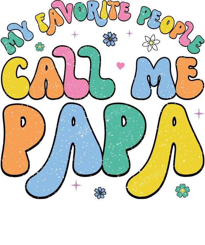 See allThis cheerful "My Favorite People Call Me Papa" DTF transfer features a playful, retro-inspired design that radiates warmth and family love. The bubbly, distressed lettering in a vibrant palette of pastel orange, yellow, pink, teal, and blue evokes a nostalgic 70s or 90s aesthetic, complemented by whimsical tiny flowers, a heart, and stars. This high-quality direct to film transfer is ready to press, allowing you to effortlessly create custom garments. Perfect for grandfathers who cherish their grandkids, this design makes an ideal gift for Papa on Father's Day, his birthday, Christmas, or as a special announcement for a new grandbaby. It’s also fantastic for family members looking to create unique, heartfelt presents or for crafters who love adding a personal, retro touch to their creations. Show your appreciation for the beloved Papa in your life with this charming apparel transfer. Applying this ready to press transfer is simple and efficient, whether you use a professional heat press or a household iron. Our DTF transfers adhere beautifully to a wide range of fabrics, including cotton, polyester, and various blends. For best results with a heat press, apply at 300-325°F for 15 seconds with medium pressure. There's no need for weeding or complex layering, making your customization project a breeze. Experience superior print quality with our professional-grade DTF film. This heat press design boasts incredibly vibrant colors that stand out, a soft-to-the-touch feel, and excellent crack-resistant durability that withstands numerous washes. The strong adhesive ensures your iron on transfer remains securely attached, providing a long-lasting, professional finish on any item.