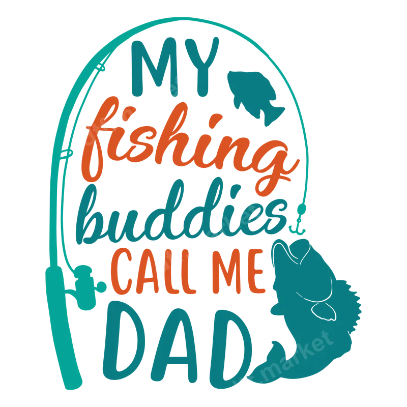 See allThis vibrant DTF transfer features the heartwarming phrase "MY fishing buddies CALL ME DAD" in a playful mix of teal and orange typography. The design is framed by a fishing rod, complete with a reel, a hook, and two prominent fish, capturing the essence of a proud father who loves to fish with his kids. It's a perfect ready to press design for anyone looking to celebrate the special bond between a dad and his little fishing companions, making it a standout apparel transfer for any angler. This unique heat transfer is designed for fathers, grandfathers, and father figures who cherish their time fishing with their children or grandchildren. It’s an ideal gift for Father's Day, birthdays, Christmas, or simply to show appreciation for the dad who loves the outdoors and the joy of fishing. Perfect for creating custom t-shirts, hoodies, and accessories that celebrate family and a shared passion for angling. Applying this DTF transfer is simple and efficient. Use a heat press at 300-325°F for 15 seconds with medium, even pressure. This iron on transfer also works well with a household iron, ensuring accessibility for all crafters. Once applied, peel warm or cool according to specific transfer instructions. Best of all, there’s absolutely no weeding required, saving you time and effort to get your custom apparel ready quickly. Our high-quality DTF transfers deliver exceptional results. Expect vivid colors that pop, superior stretch and crack resistance for long-lasting wear, and a soft-to-touch feel that integrates seamlessly with your fabric. Each heat press design is produced using professional-grade DTF film and strong adhesive, ensuring a durable and vibrant finish that will withstand countless washes and adventures.